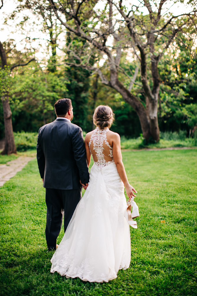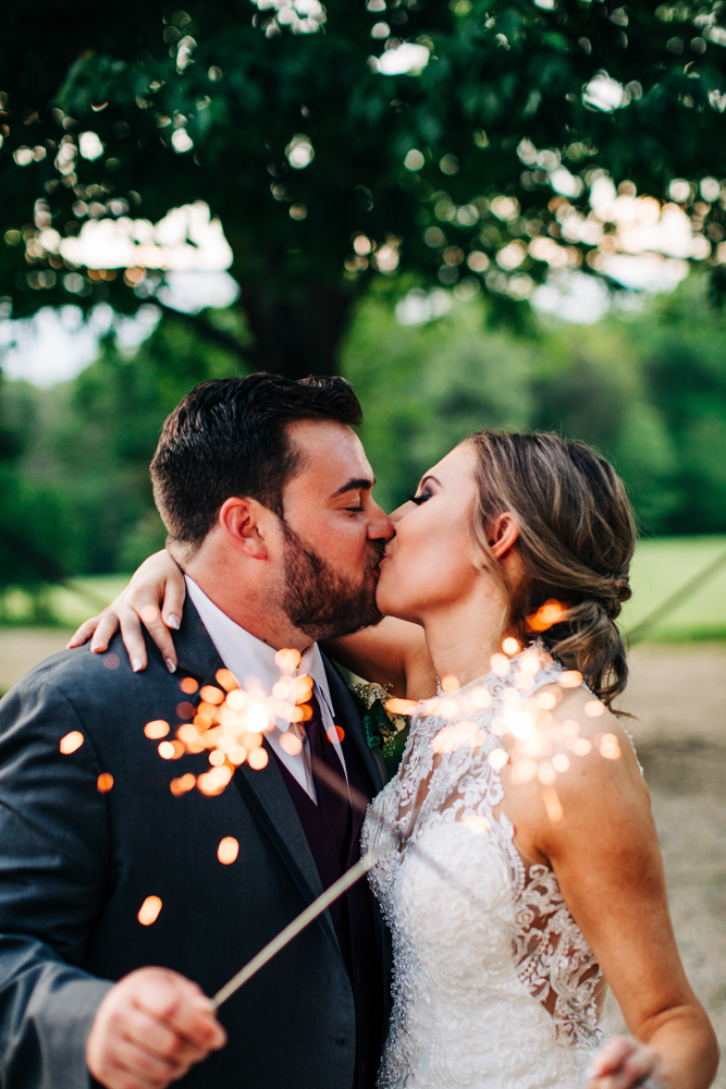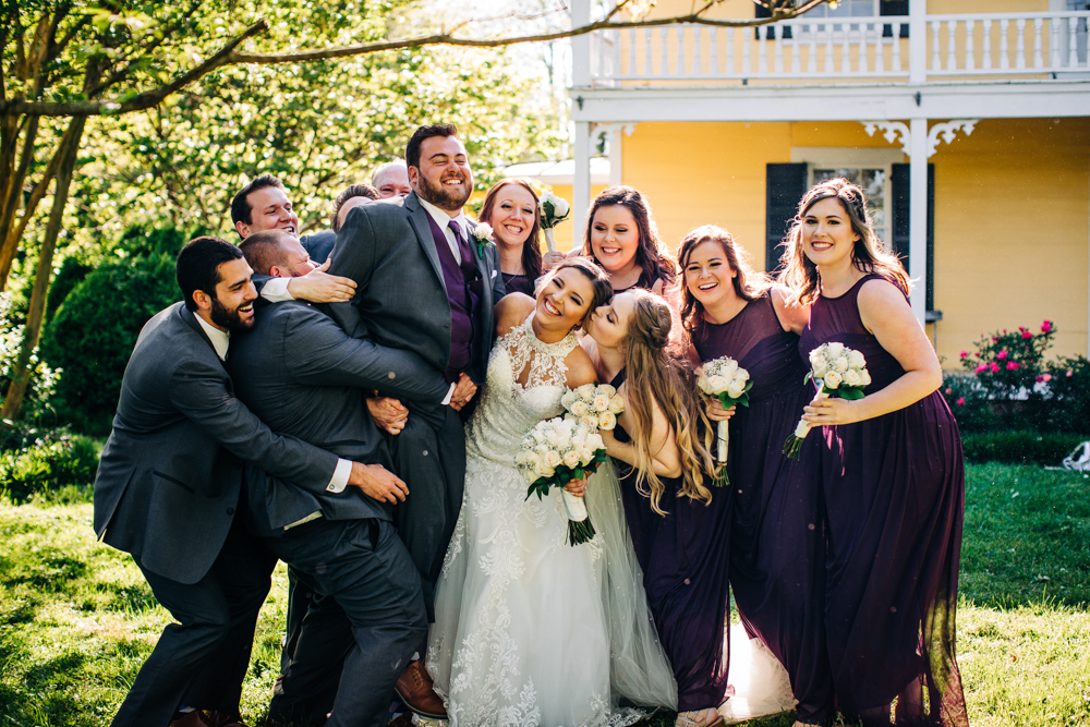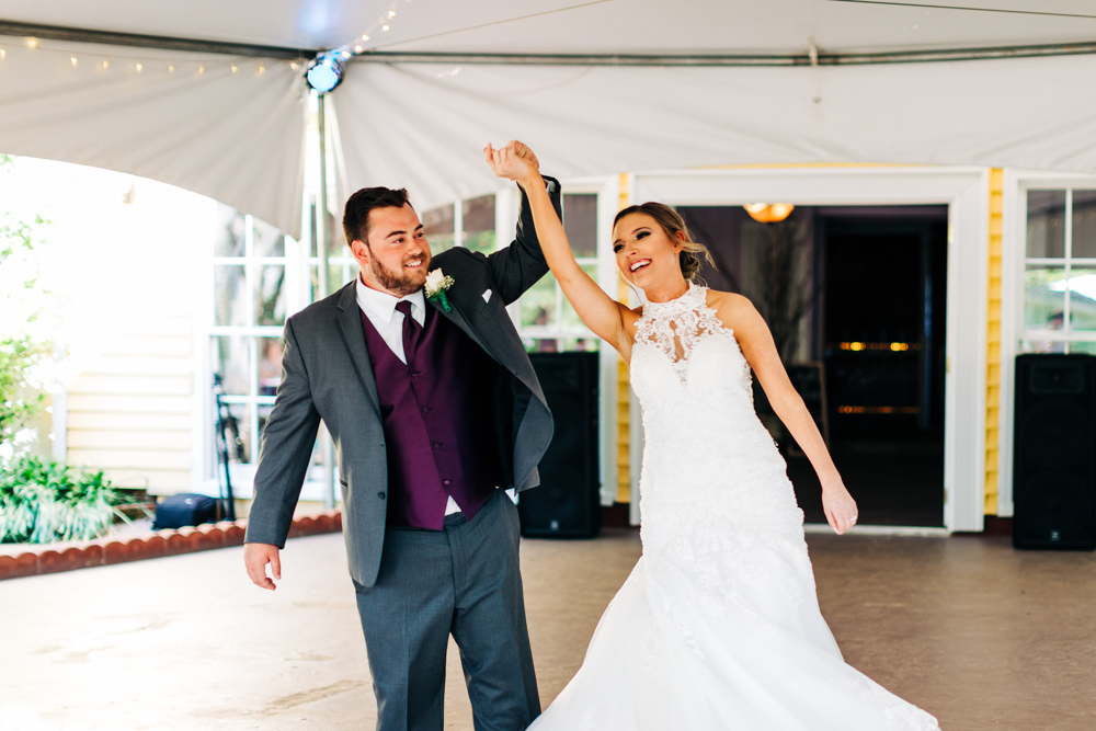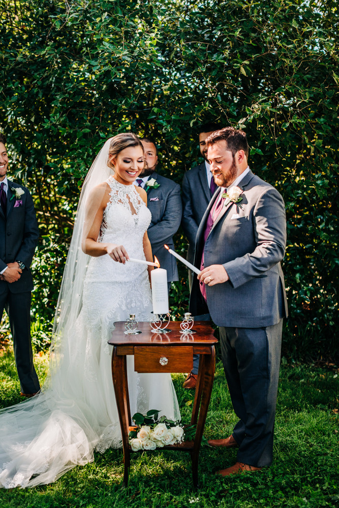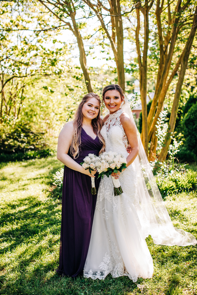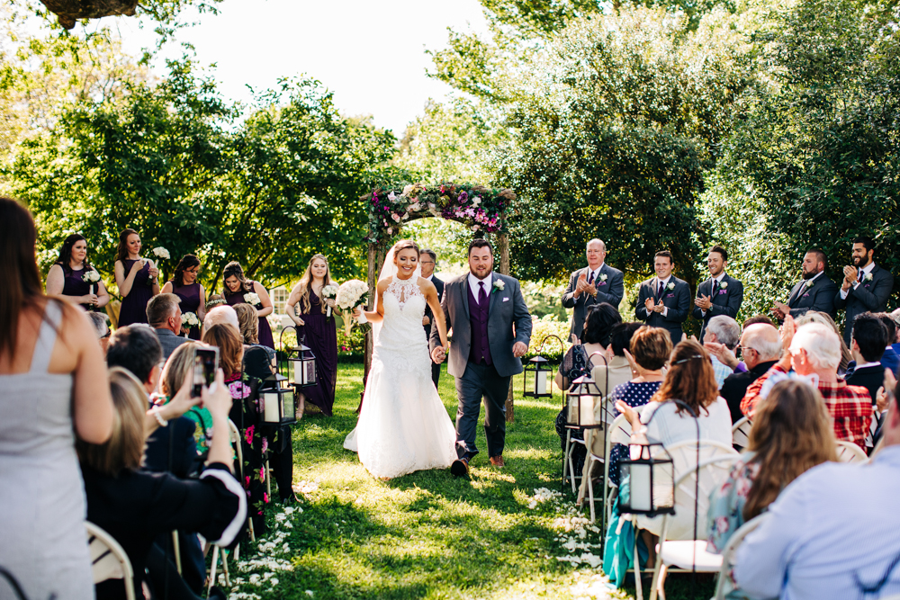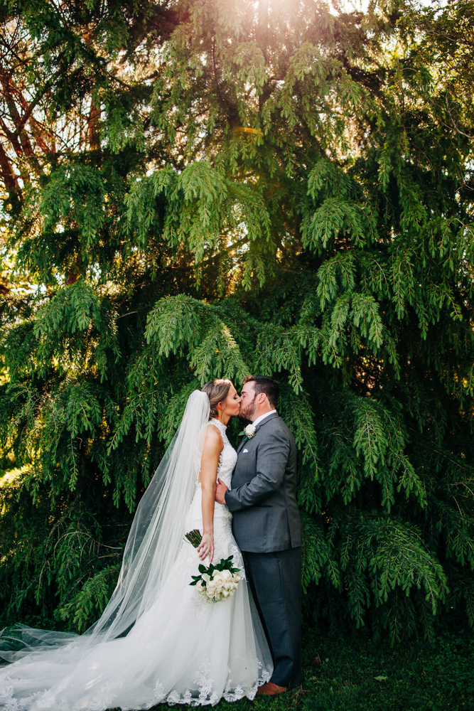 I’m obsessed with Jessica’s dress! Late April is the perfect time for a gorgeous and green background! I had promised them perfect weather and they got it! Jessica’s therapy dog was trimmed and gorgeous for the ceremony. The wood arbor had plum and cream silk decor provided by the 1812 Hitching Post.
