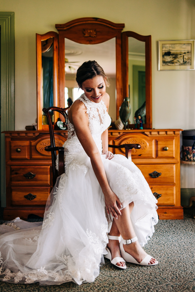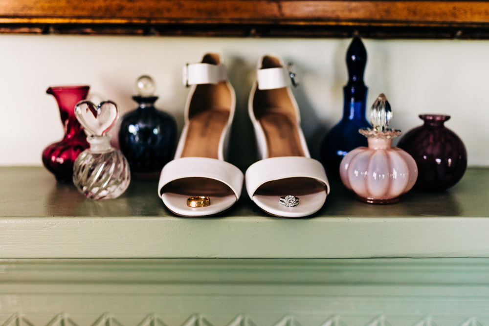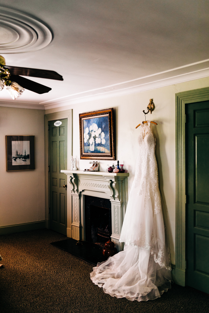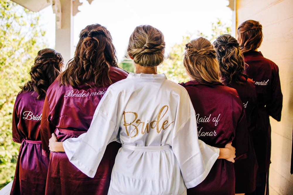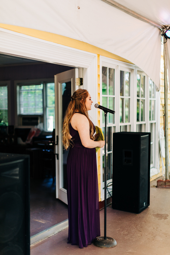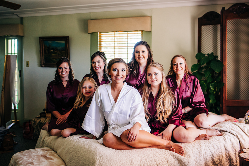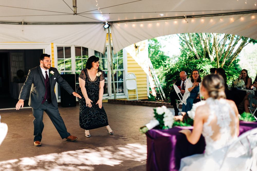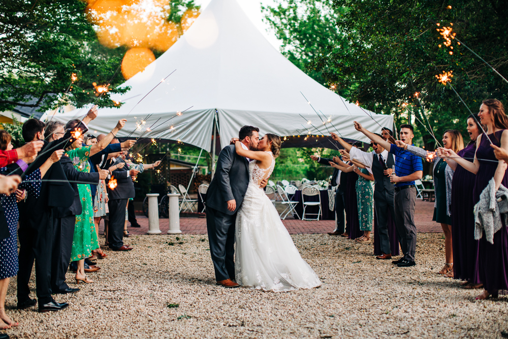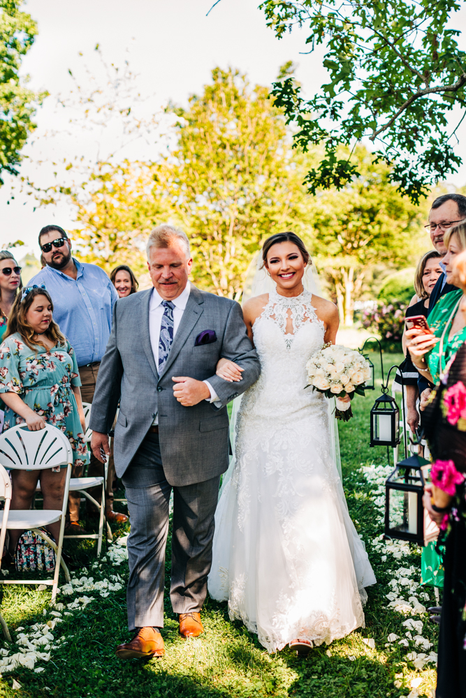 I’m obsessed with Jessica’s dress! Late April is the perfect time for a gorgeous and green background! I had promised them perfect weather and they got it! Jessica’s therapy dog was trimmed and gorgeous for the ceremony. The wood arbor had plum and cream silk decor provided by the 1812 Hitching Post.